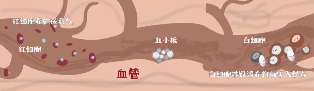 如果將我們身體看成一座明亮有序的現(xiàn)代城市,那血管就是繁忙的街道。在血管里,無(wú)數(shù)的細(xì)胞各司其職,維持著我們身體的正常運(yùn)轉(zhuǎn)。其中,紅細(xì)胞是“設(shè)計(jì)精巧的物流車(chē)”,將氧氣源源不斷地從肺部輸送到身體的各個(gè)組織;白細(xì)胞是“勇敢的護(hù)衛(wèi)者”,守護(hù)身體并摧毀潛在的有害入侵者;血小板是反應(yīng)迅猛的“搶修員”,一旦街道出現(xiàn)破損,就立刻上前修補(bǔ)……