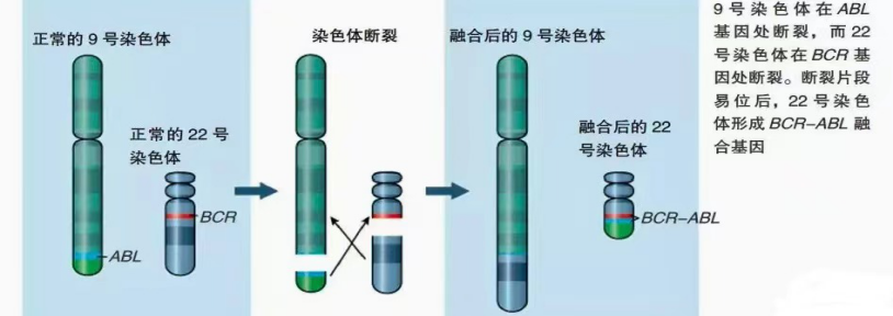 慢性粒細(xì)胞白血?。–ML)的病因在于患者體內(nèi)的第 9 號和第 22 號染色體發(fā)生斷裂易位,進(jìn)而形成費城染色體(Ph 染色體)。這種染色體的異常變化會導(dǎo)致 BCR-ABL 融合基因的產(chǎn)生,該融合基因會調(diào)控機(jī)體生成過多異常的粒細(xì)胞。也正因如此,每年的9月22日被定為國際慢粒日。